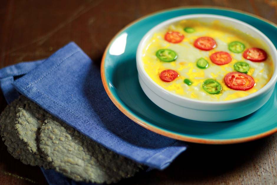 Queso fundido con Rajas de Chile Poblano y Jalapeños (chiedilo anche vegano)